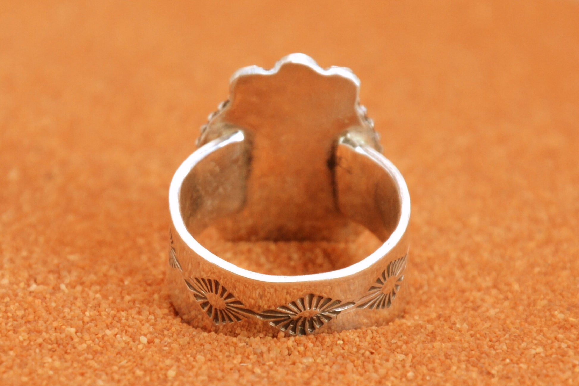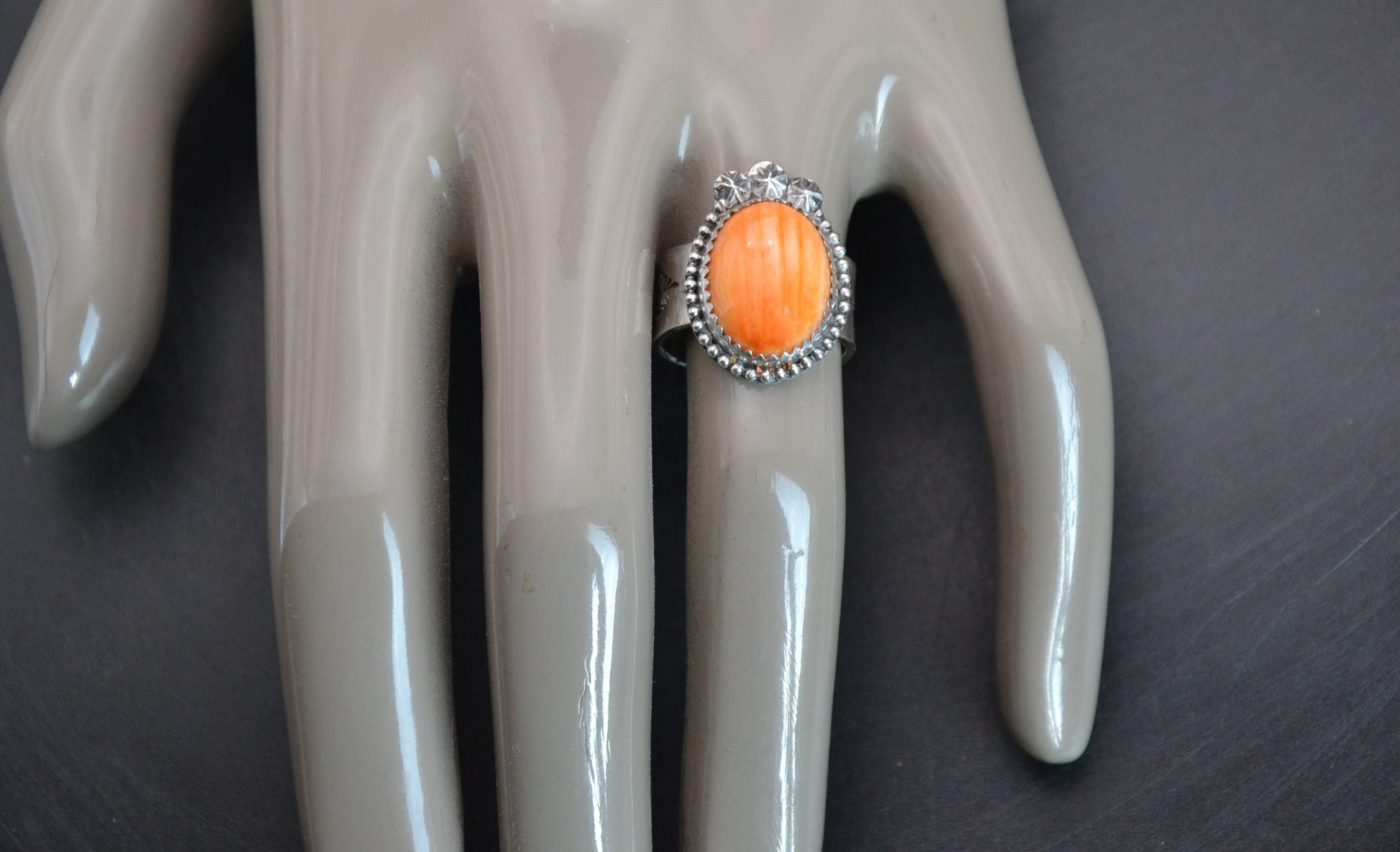 Bague femme-spiny oyster-amerindienne-style navajo-cadeau-argent sterling-orange-artisanat
