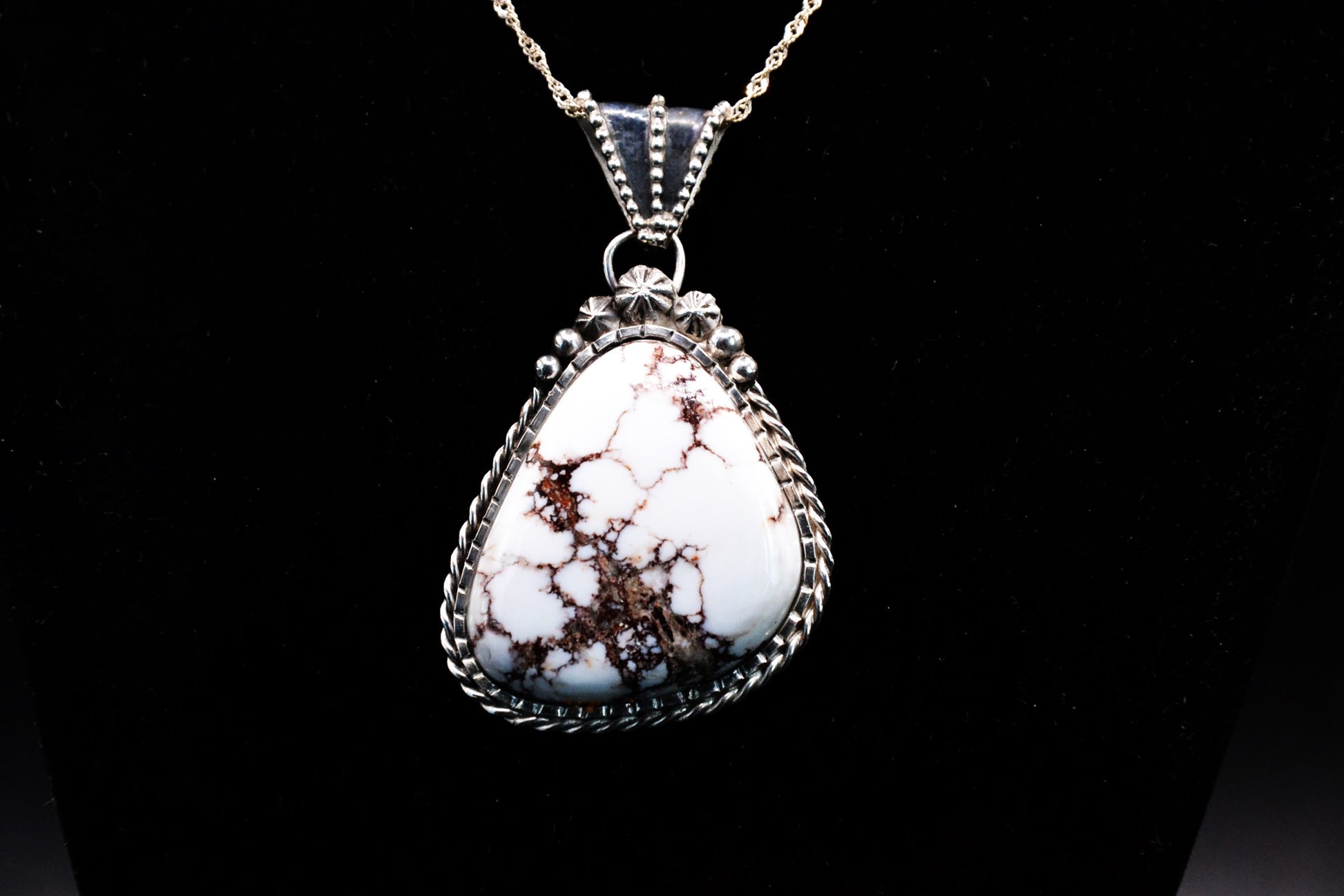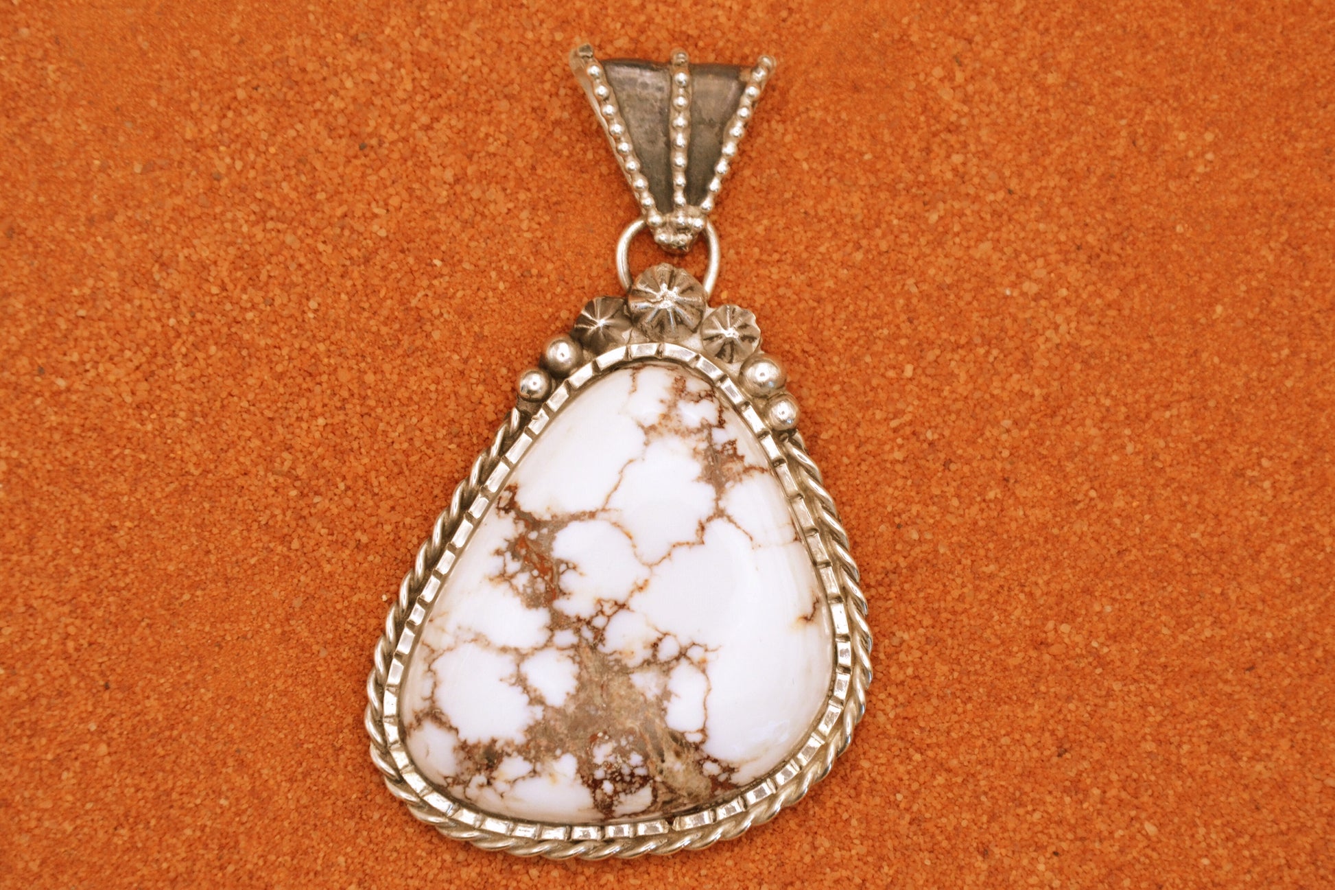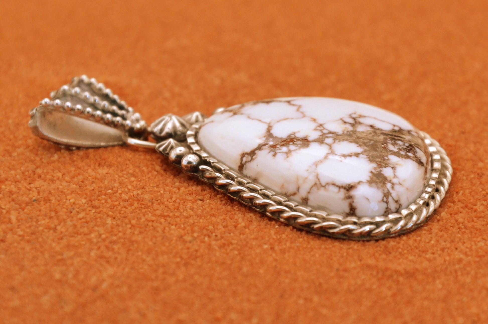 Pendentif artisanal en argent 925/1000 incrusté d'une magnifique pierre Wild Horse